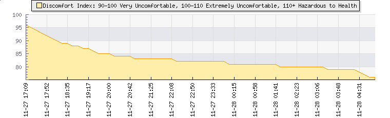 | Wind Gust: | 10 km/h | Min Temp: | 19.1 °C | Max Temp: | 20.5 °C | | Wind Average: | 6 km/h | Min Hum: | 80 % | Max Hum: | 87 % | |  |