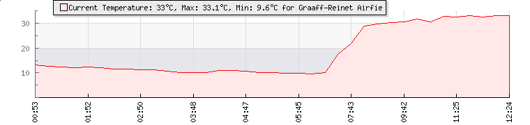 GPS Co-ordinates: | S 32º 11' 35, E 24º 32' 36 | ASL: | 2743 feet | Sunrise / Sunset: | 05:50 / 18:29 | Beaufort Scale: | Light Air |