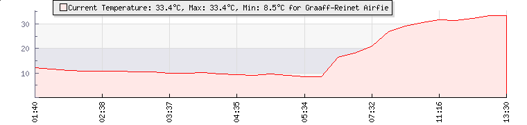 GPS Co-ordinates: | S 32º 11' 35, E 24º 32' 36 | ASL: | 2726 feet | Sunrise / Sunset: | 05:36 / 18:38 | Beaufort Scale: | Light Air |