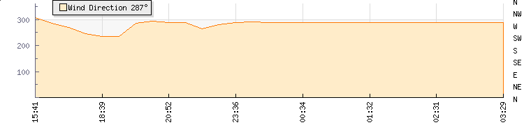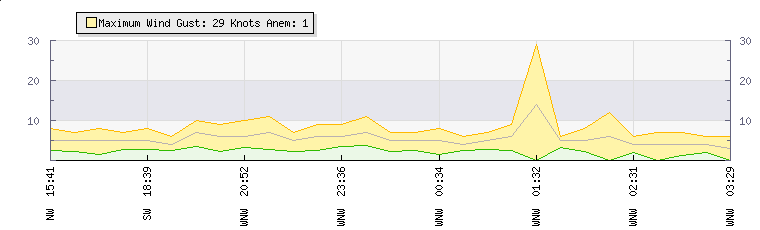 In the last few minutes the wind was West North West at an average speed of 5 knots, reaching up to 8 knots and a low of 2 knots. The gust strength is6 knots above the minimum speed |