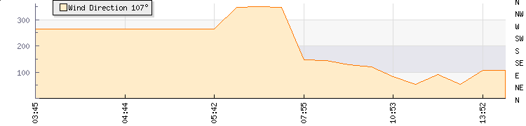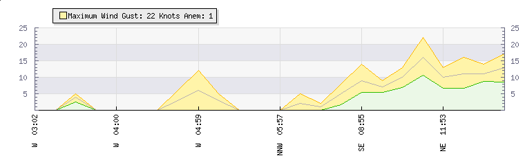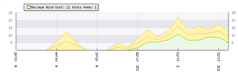 In the last few minutes the wind was Westerly at an average speed of 3 knots, reaching up to 4 knots and a low of 1 knots. The gust strength is3 knots above the minimum speed |