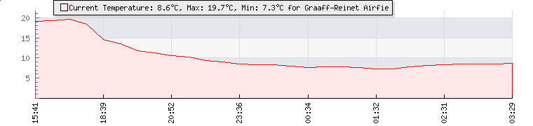 GPS Co-ordinates: | S 32º 11' 35, E 24º 32' 36 | ASL: | 2743 feet | Sunrise / Sunset: | 05:59 / 18:24 | Beaufort Scale: | Light Breeze |