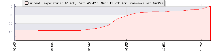 | GPS Co-ordinates: | S 32º 11' 35, E 24º 32' 36 | | ASL: | 2723 feet | | Sunrise / Sunset: | 05:09 / 19:23 | | Beaufort Scale: | Light Air |