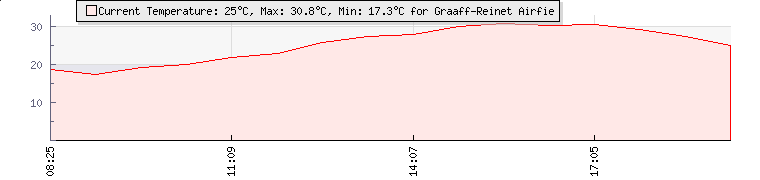 | GPS Co-ordinates: | S 32º 11' 35, E 24º 32' 35 | | ASL: | 2749 feet | | Sunrise / Sunset: | 05:13 / 19:00 | | Beaufort Scale: | Light Breeze |