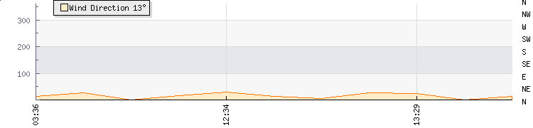 In the last few minutes the wind was North North East at an average speed of 4 kmh, reaching up to 8 kmh and a low of 1 kmh. The gust strength is7 kmh above the minimum speed |