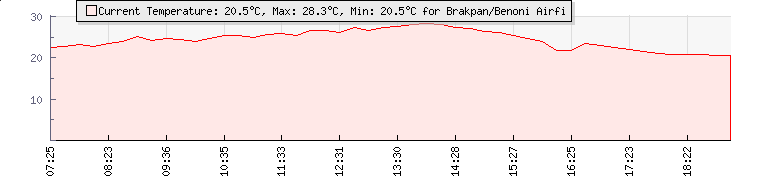 | GPS Co-ordinates: | S 26º 14' 34, E 28º 18' 02 | | ASL: | 5456 feet | | Sunrise / Sunset: | 05:09 / 18:56 | | Beaufort Scale: | Light Breeze |
