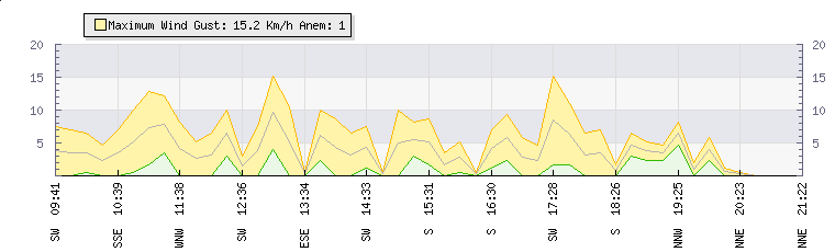 In the last few minutes the wind was Northerly at an average speed of 1 kmh, reaching up to 2 kmh and a low of 0 kmh. The gust strength is2 kmh above the minimum speed |