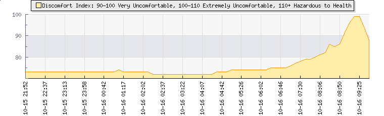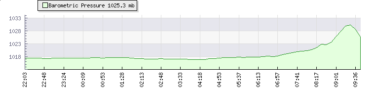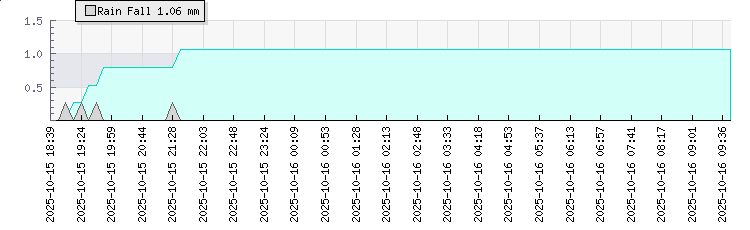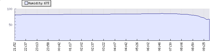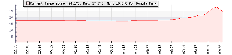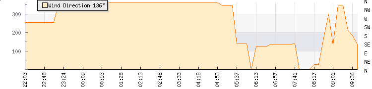 Wind Gust: | 11 km/h | Min Temp: | 16.8 °C | Max Temp: | 17.9 °C | Wind Average: | 5 km/h | Min Hum: | 82 % | Max Hum: | 85 % | |  |