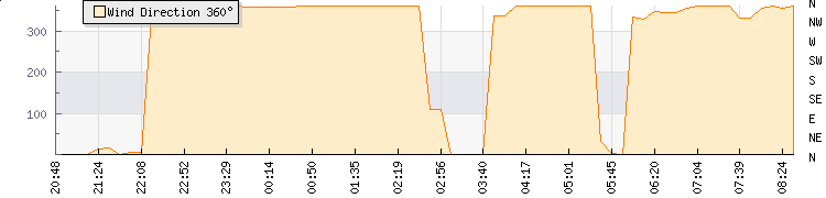 In the last few minutes the wind was North North West at an average speed of 1 kmh, reaching up to 2 kmh and a low of 0 kmh. The gust strength is2 kmh above the minimum speed |
