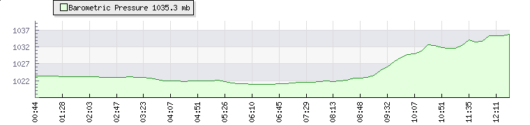 | Wind Speed: | 0|2|3 knots | Wind Direction: | NNW 329° | Temperature: | 29.3°C | | Wet Bulb: | 25.1°C | Discomfort: | 103 | Humidity: | 71% | | Rainfall Today: | 0.5mm | 12 hrs Rainfall: | 0.5mm | 24 hrs Rainfall: | 0.5mm | | Barometer: | 1031.2mb | Dew Point: | 23.5°C | Clouds AGL: | 2327ft (709 m) | | Density-Alt: | 1686ft (514 m) | Solar Radiation: | 2251Wm² | Fire Danger: | |