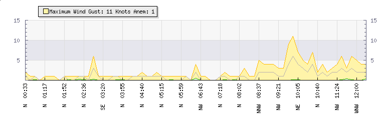 In the last few minutes the wind was North North West at an average speed of 2 knots, reaching up to 3 knots and a low of 0 knots. The gust strength is3 knots above the minimum speed |