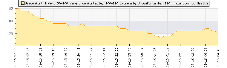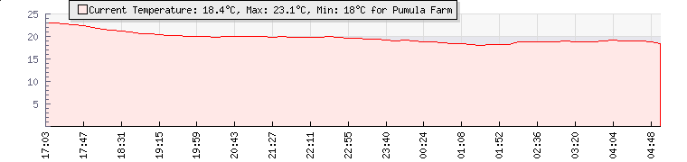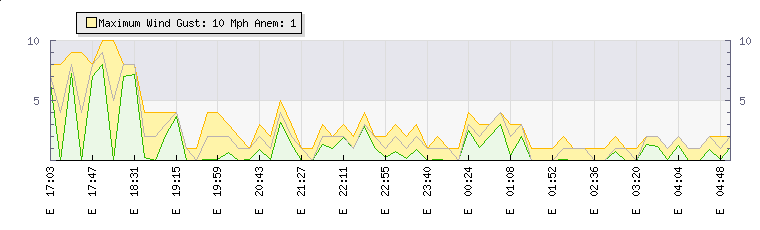 | Wind Gust: | 4 mph | Min Temp: | 18 °C | Max Temp: | 19.1 °C | | Wind Average: | 4 mph | Min Hum: | 73 % | Max Hum: | 74 % | |  |