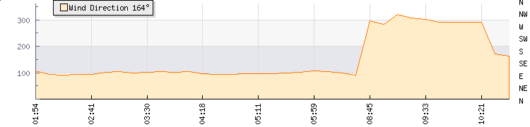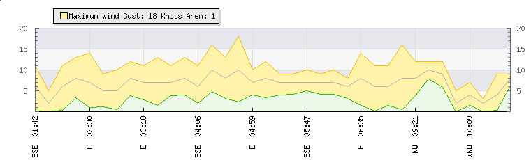 In the last few minutes the wind was West North West at an average speed of 2 knots, reaching up to 3 knots and a low of 0 knots. The gust strength is3 knots above the minimum speed |