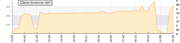 In the last few minutes the wind was North North West at an average speed of 7 knots, reaching up to 13 knots and a low of 0 knots. The gust strength is13 knots above the minimum speed |