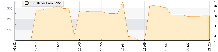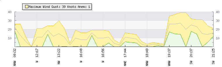 In the last few minutes the wind was West North West at an average speed of 26 knots, reaching up to 35 knots and a low of 17 knots. The gust strength is18 knots above the minimum speed |