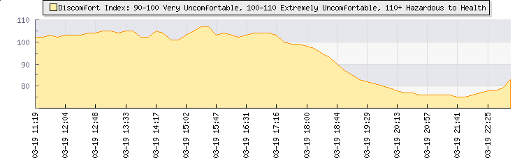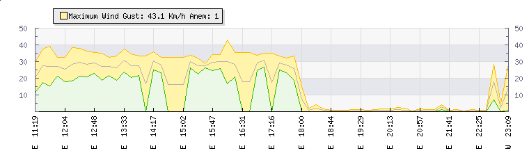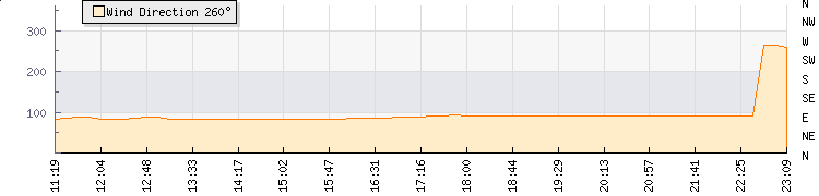 In the last few minutes the wind was Easterly at an average speed of 1 kmh, reaching up to 1 kmh and a low of 0 kmh. The gust strength is1 kmh above the minimum speed |