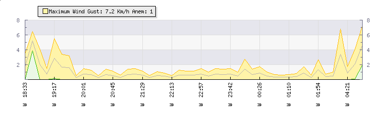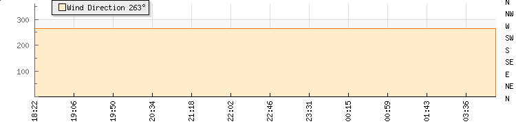 In the last few minutes the wind was Westerly at an average speed of 1 kmh, reaching up to 2 kmh and a low of 0 kmh. The gust strength is2 kmh above the minimum speed |