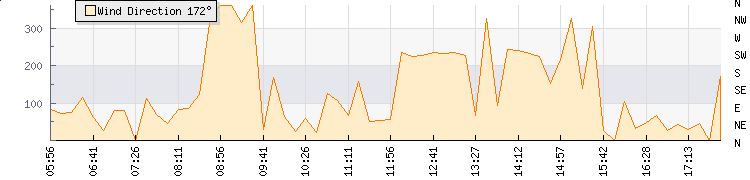 In the last few minutes the wind was North Westerly at an average speed of 5 kmh, reaching up to 9 kmh and a low of 2 kmh. The gust strength is7 kmh above the minimum speed |