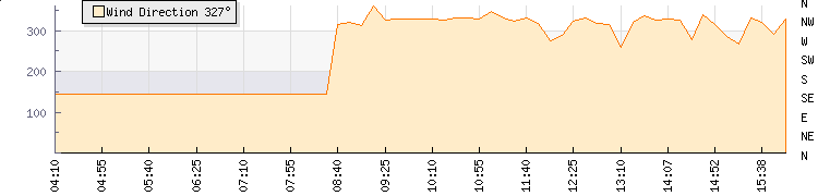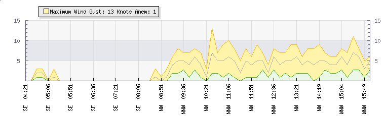 In the last few minutes the wind was North Westerly at an average speed of 4 knots, reaching up to 7 knots and a low of 1 knots. The gust strength is6 knots above the minimum speed |
