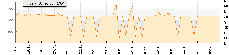 In the last few minutes the wind was South Westerly at an average speed of 0 mph, reaching up to 0 mph and a low of 0 mph. The gust strength is0 mph above the minimum speed |
