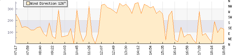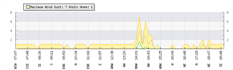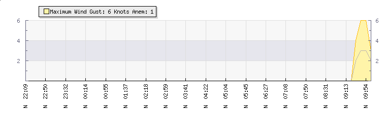 In the last few minutes the wind was Northerly at an average speed of 0 knots, reaching up to 0 knots and a low of 0 knots. The gust strength is0 knots above the minimum speed |