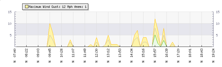 In the last few minutes the wind was Northerly at an average speed of 0 mph, reaching up to 0 mph and a low of 0 mph. The gust strength is0 mph above the minimum speed |