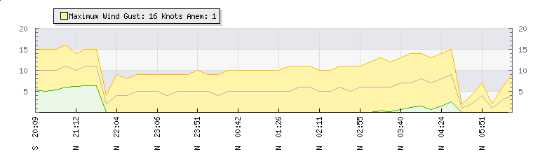 In the last few minutes the wind was Northerly at an average speed of 4 knots, reaching up to 7 knots and a low of 0 knots. The gust strength is7 knots above the minimum speed |