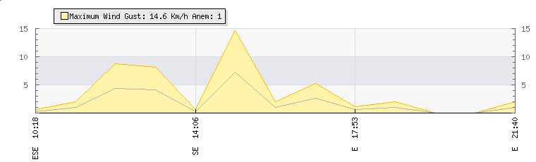 In the last few minutes the wind was East North East at an average speed of 0 kmh, reaching up to 0 kmh and a low of 0 kmh. The gust strength is0 kmh above the minimum speed |