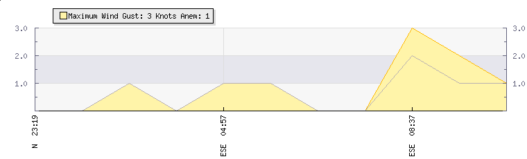 In the last few minutes the wind was Northerly at an average speed of 0 knots, reaching up to 0 knots and a low of 0 knots. The gust strength is0 knots above the minimum speed |