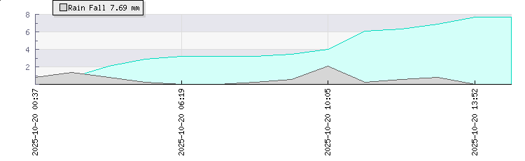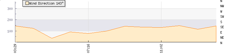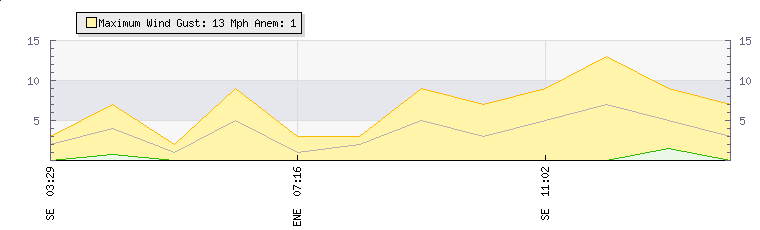 In the last few minutes the wind was South Easterly at an average speed of 5 mph, reaching up to 9 mph and a low of 0 mph. The gust strength is9 mph above the minimum speed |