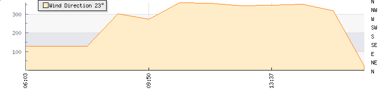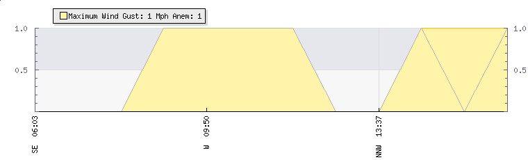 In the last few minutes the wind was North North West at an average speed of 0 mph, reaching up to 0 mph and a low of 0 mph.  The gust strength is0 mph above the minimum speed             |