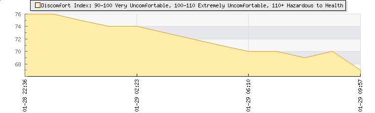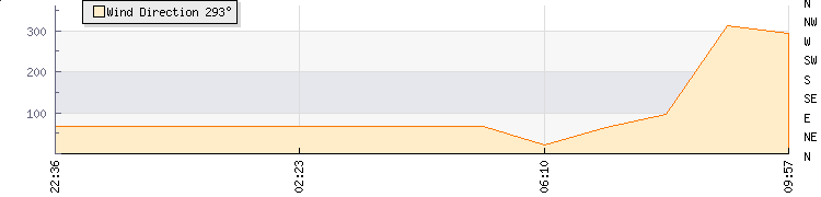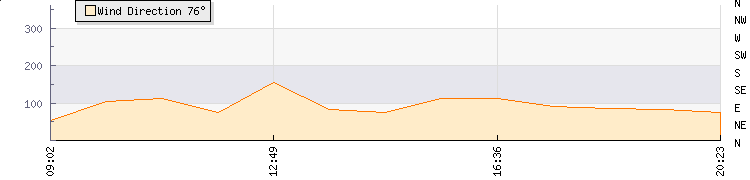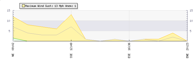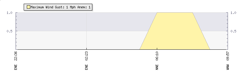 In the last few minutes the wind was Easterly at an average speed of 1 mph, reaching up to 1 mph and a low of 0 mph. The gust strength is1 mph above the minimum speed |