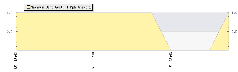 In the last few minutes the wind was North Easterly at an average speed of 0 mph, reaching up to 0 mph and a low of 0 mph. The gust strength is0 mph above the minimum speed |