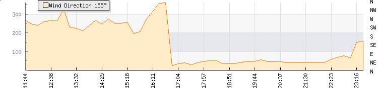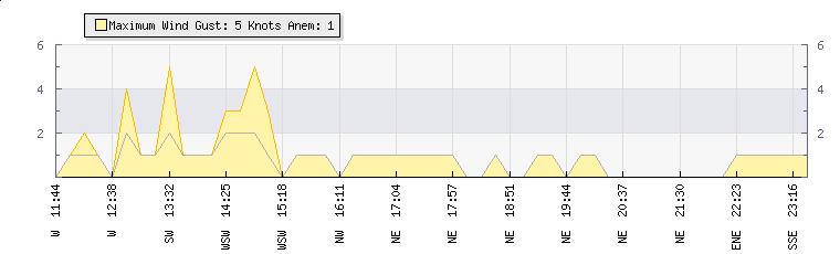 In the last few minutes the wind was North Easterly at an average speed of 0 knots, reaching up to 0 knots and a low of 0 knots. The gust strength is0 knots above the minimum speed |