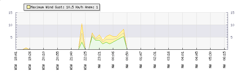 In the last few minutes the wind was North Westerly at an average speed of 0 kmh, reaching up to 0 kmh and a low of 0 kmh. The gust strength is0 kmh above the minimum speed |