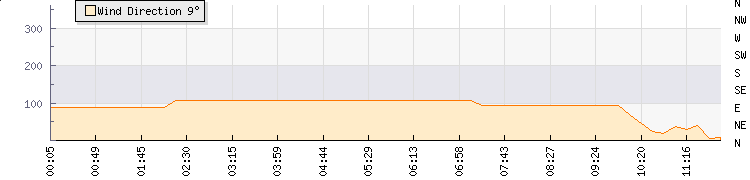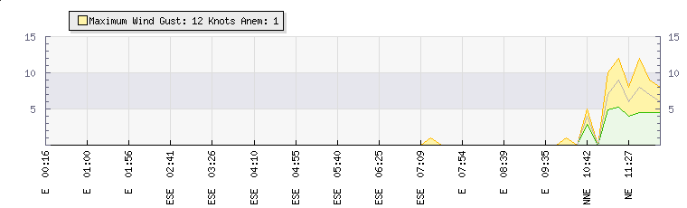 In the last few minutes the wind was North Easterly at an average speed of 0 knots, reaching up to 0 knots and a low of 0 knots. The gust strength is0 knots above the minimum speed |