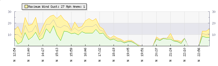 In the last few minutes the wind was Northerly at an average speed of 0 mph, reaching up to 0 mph and a low of 0 mph. The gust strength is0 mph above the minimum speed |