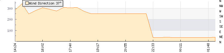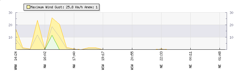 In the last few minutes the wind was North Easterly at an average speed of 0 kmh, reaching up to 0 kmh and a low of 0 kmh. The gust strength is0 kmh above the minimum speed |