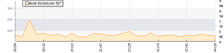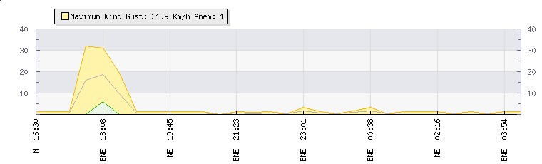 In the last few minutes the wind was East North East at an average speed of 1 kmh, reaching up to 2 kmh and a low of 0 kmh. The gust strength is2 kmh above the minimum speed |