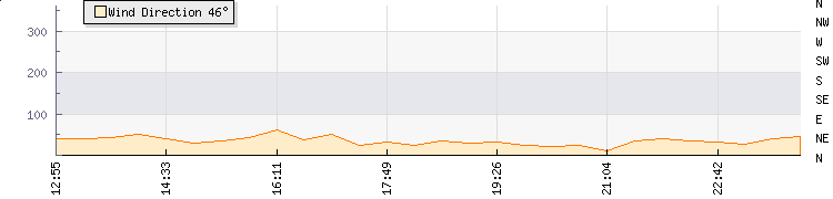 In the last few minutes the wind was North Easterly at an average speed of 1 knots, reaching up to 1 knots and a low of 0 knots. The gust strength is1 knots above the minimum speed |