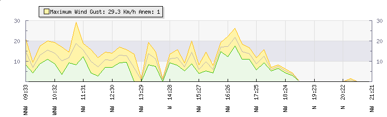 In the last few minutes the wind was Northerly at an average speed of 4 kmh, reaching up to 4 kmh and a low of 3 kmh. The gust strength is1 kmh above the minimum speed |