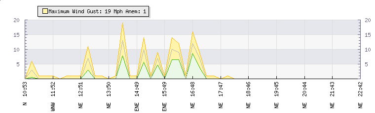In the last few minutes the wind was North Easterly at an average speed of 0 mph, reaching up to 0 mph and a low of 0 mph. The gust strength is0 mph above the minimum speed |