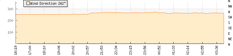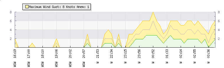 In the last few minutes the wind was Westerly at an average speed of 4 knots, reaching up to 6 knots and a low of 2 knots. The gust strength is4 knots above the minimum speed |