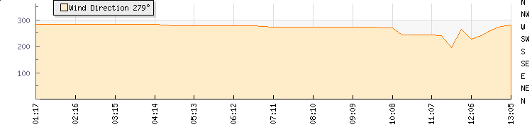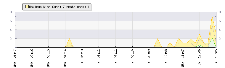 In the last few minutes the wind was South South West at an average speed of 1 knots, reaching up to 2 knots and a low of 0 knots. The gust strength is2 knots above the minimum speed |