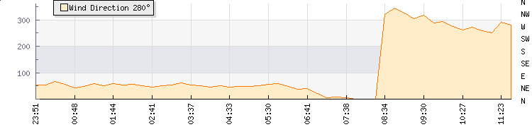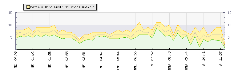 In the last few minutes the wind was Westerly at an average speed of 6 knots, reaching up to 9 knots and a low of 3 knots. The gust strength is6 knots above the minimum speed |