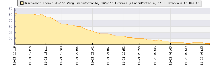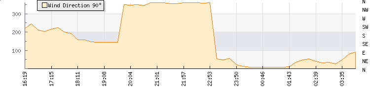 In the last few minutes the wind was Easterly at an average speed of 5 mph, reaching up to 5 mph and a low of 4 mph. The gust strength is1 mph above the minimum speed |