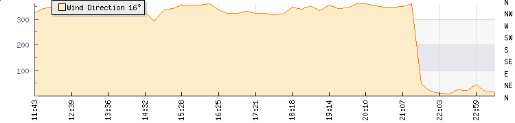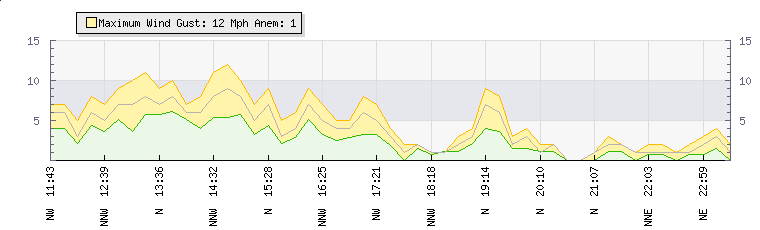 In the last few minutes the wind was North North East at an average speed of 2 mph, reaching up to 2 mph and a low of 1 mph. The gust strength is1 mph above the minimum speed |