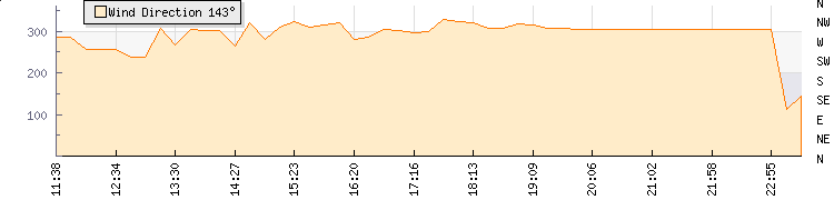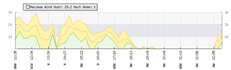 In the last few minutes the wind was North Westerly at an average speed of 0 kmh, reaching up to 0 kmh and a low of 0 kmh. The gust strength is0 kmh above the minimum speed |