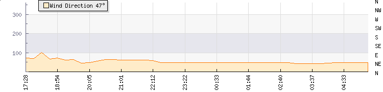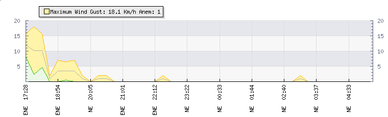 In the last few minutes the wind was North Easterly at an average speed of 1 kmh, reaching up to 2 kmh and a low of 0 kmh. The gust strength is2 kmh above the minimum speed |