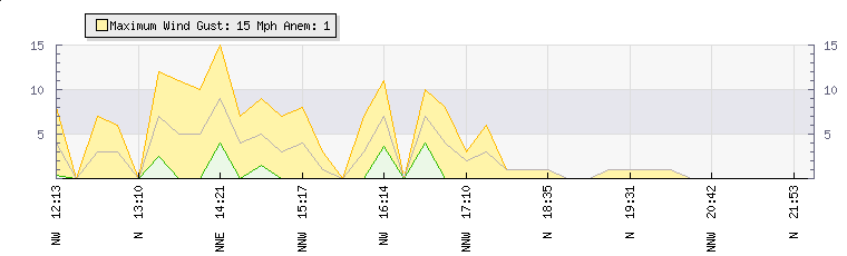 In the last few minutes the wind was Northerly at an average speed of 0 mph, reaching up to 0 mph and a low of 0 mph. The gust strength is0 mph above the minimum speed |